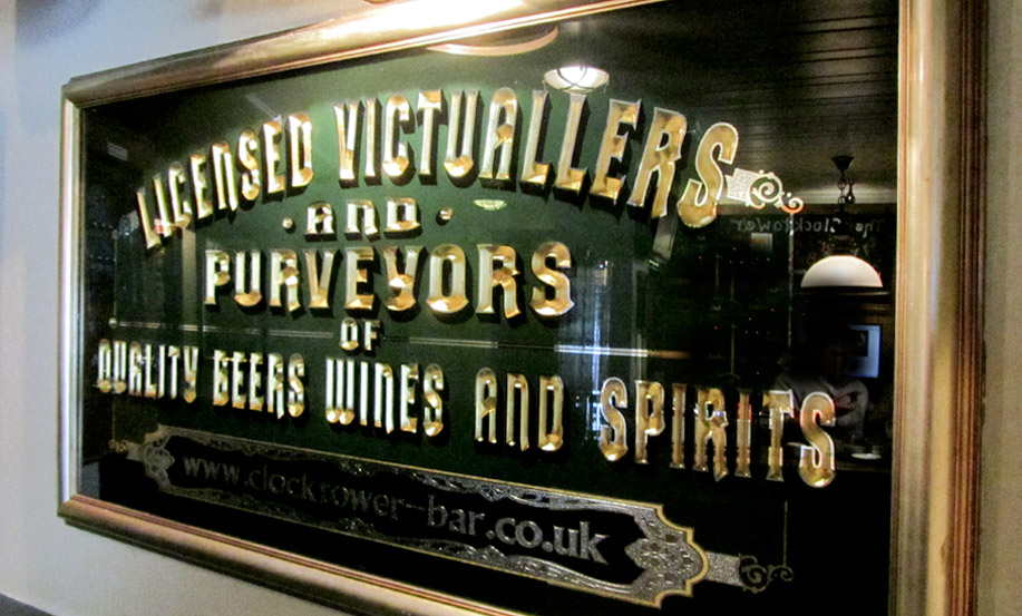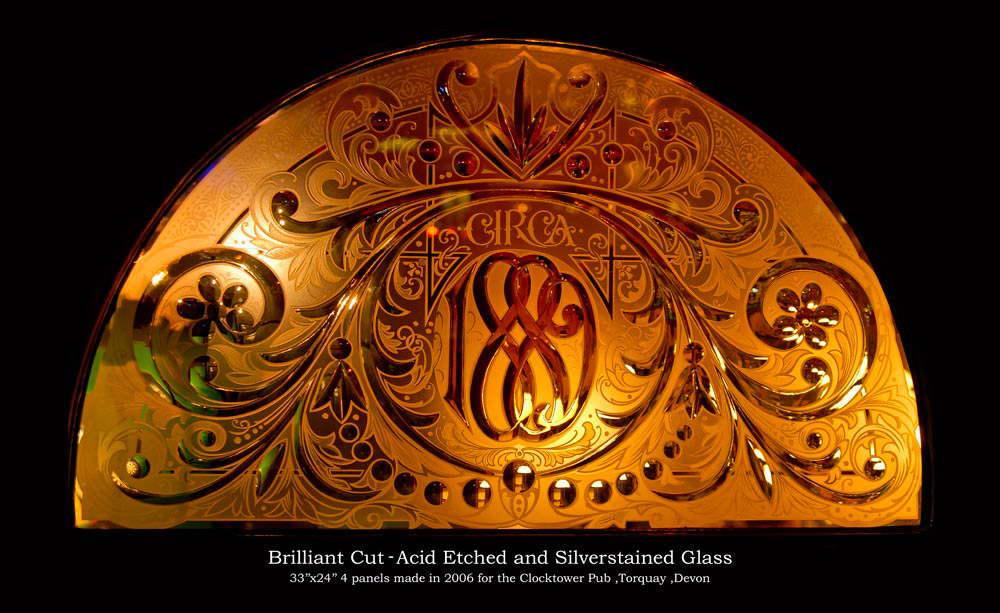 The Landlord of the Clocktower, Torquay has been one of the most regular customers for my work over the years, gradually commissioning me to transform his pub into a London style Gin Palace using Victorian glass techniques that he has a passion for.