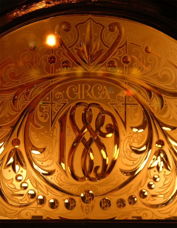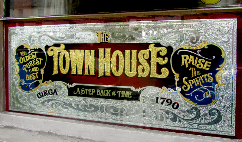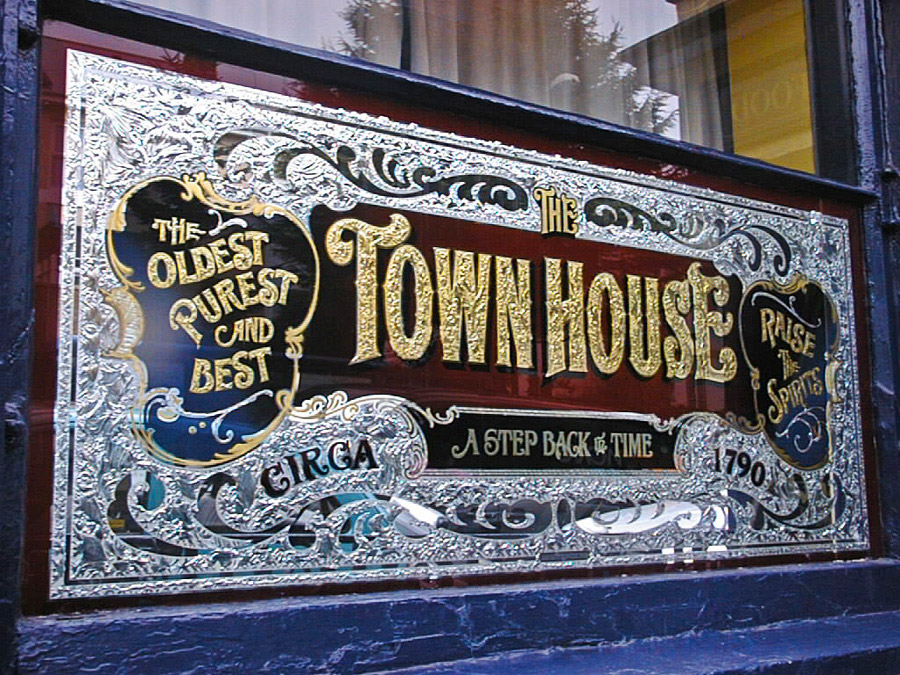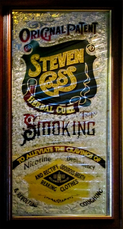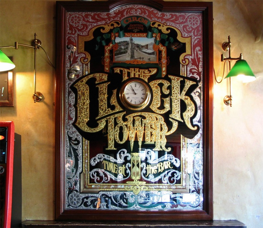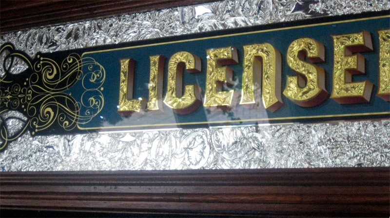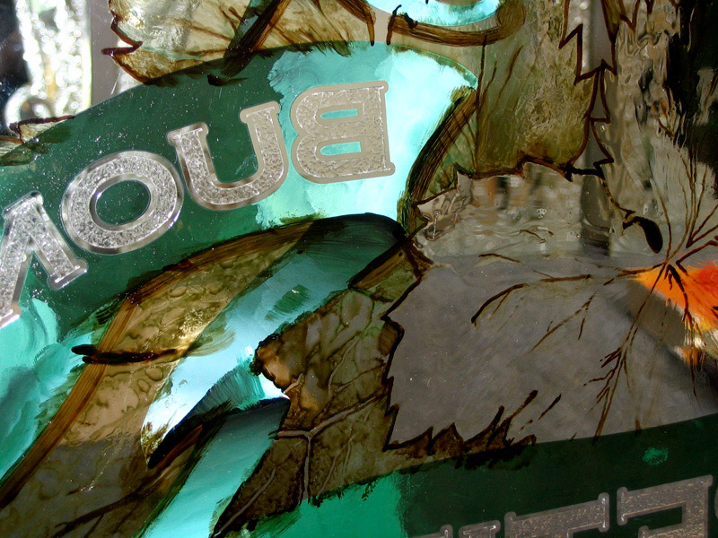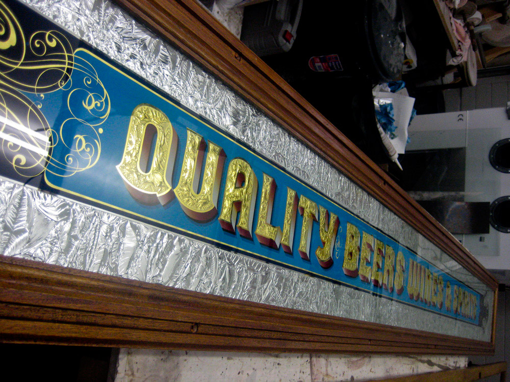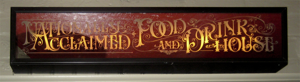 This glass sign I made for a local pub in my town. It was designed from an original trade card that Rick Glawson bought from an advertising show in Los Angeles.