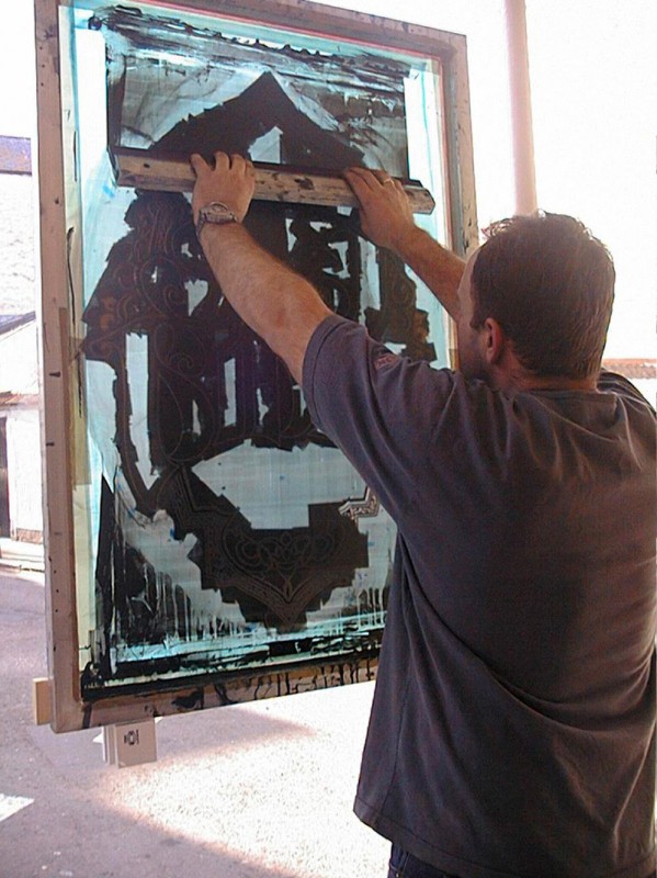 One of my early silvered, gilded and acid etched panels 5ftx3ft made in 1997.