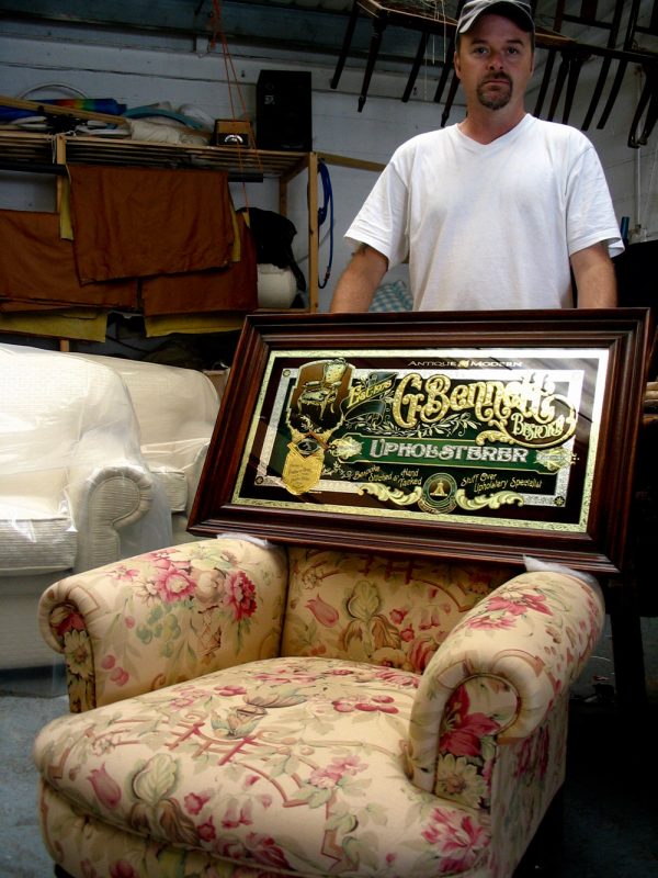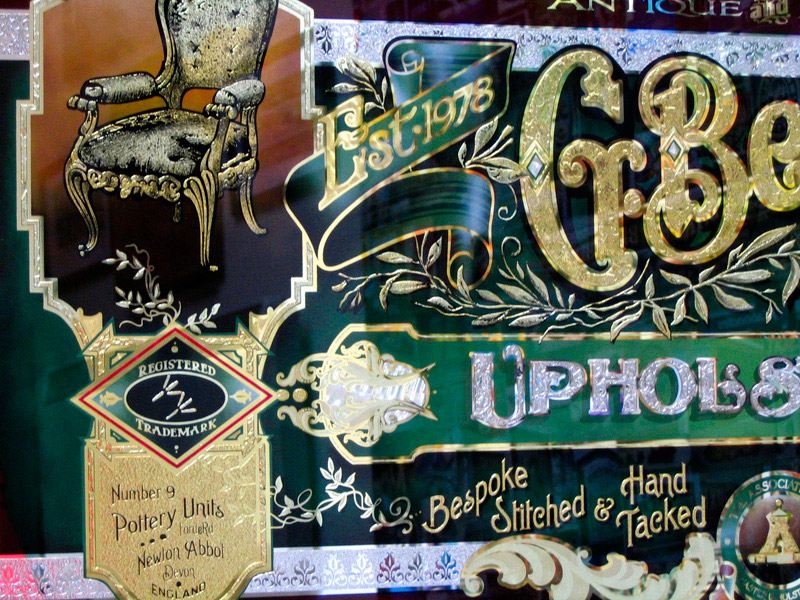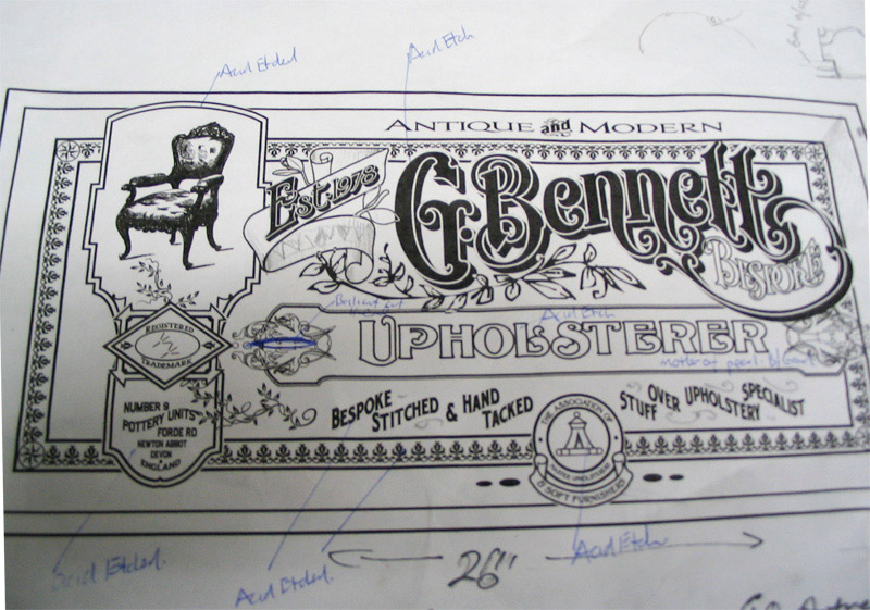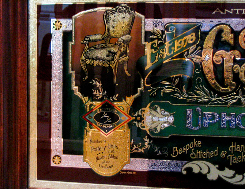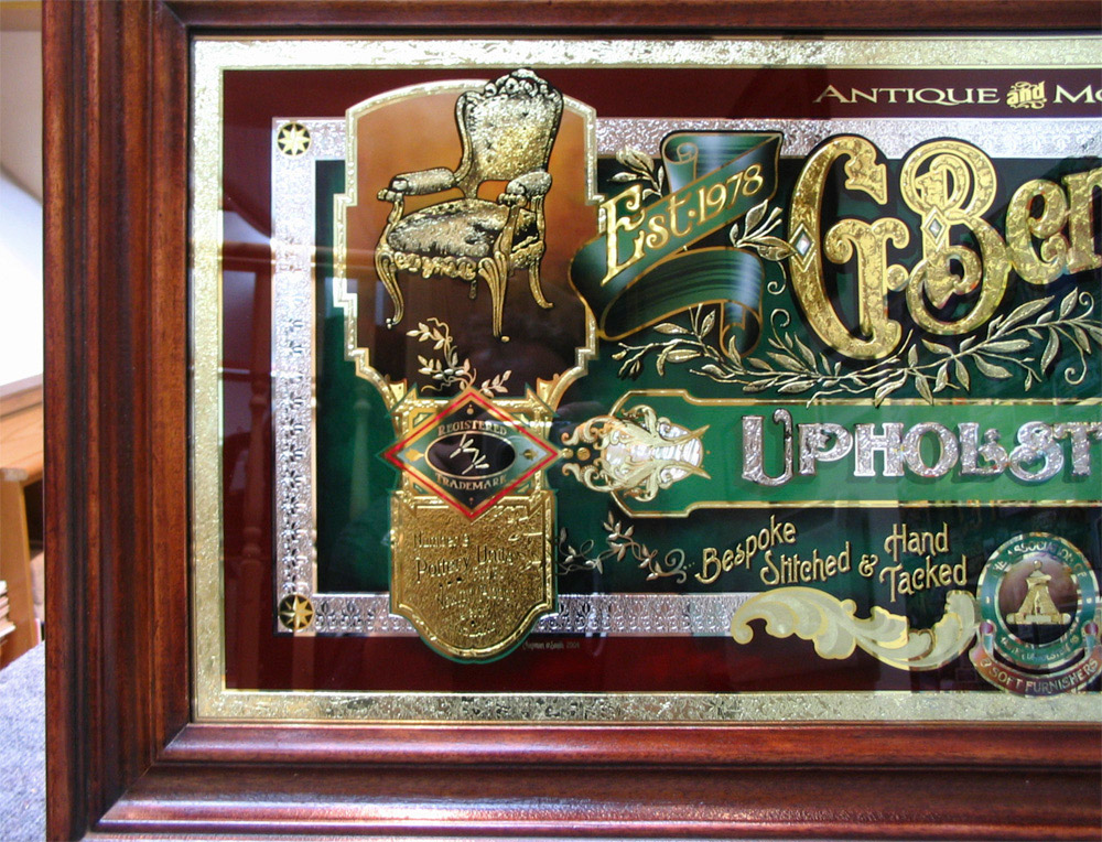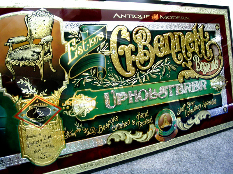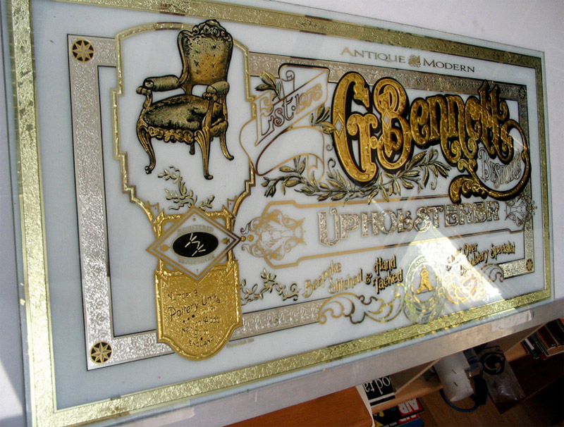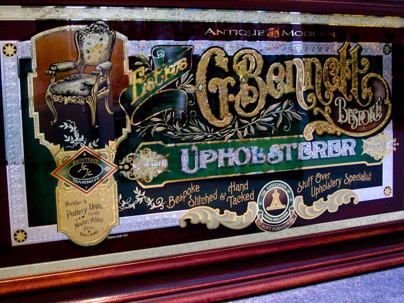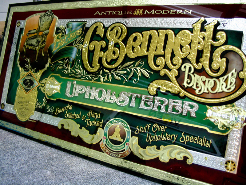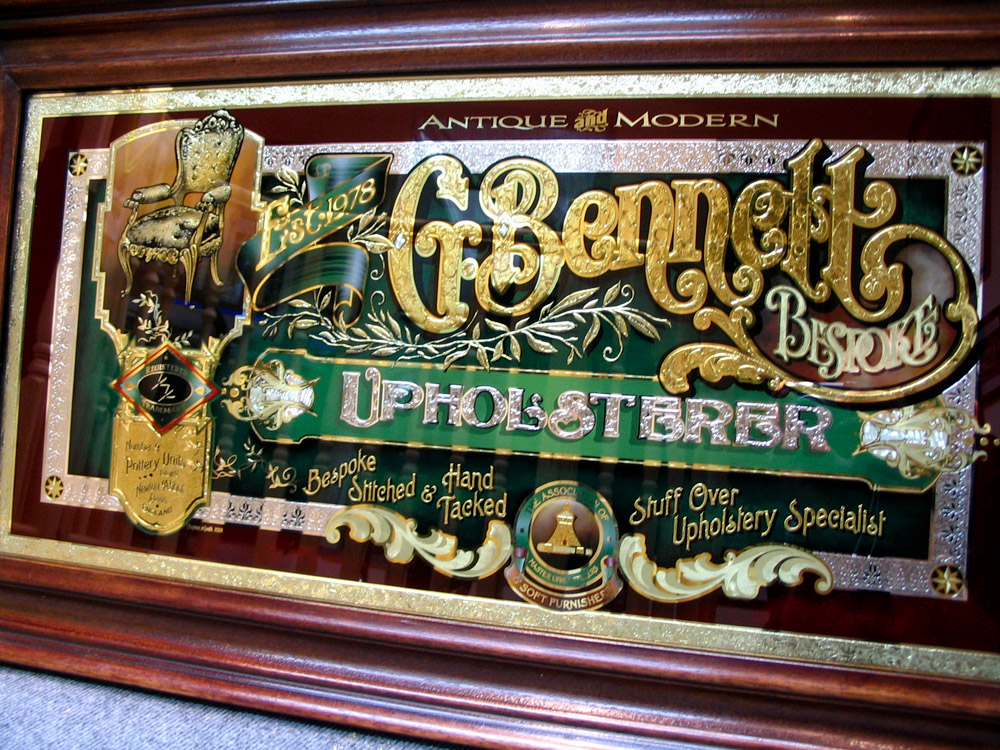 This Victorian glass sign was made for a traditional craftsman who is passionate about his trade. Geoff Bennett runs a small one-man Upholstery business in Newton Abbott, Devon.