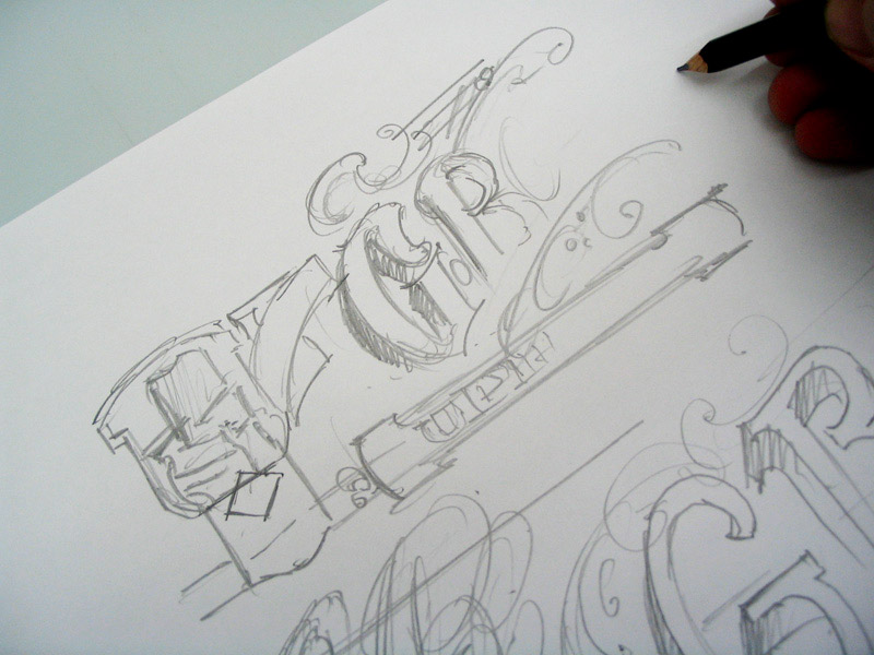 The cigar pictorial to the left of the design was 'painted' using a Wacom tablet in Photoshop. Probably took just as long with these computer tools as it would have been using oil paints with a brush and painting by hand.