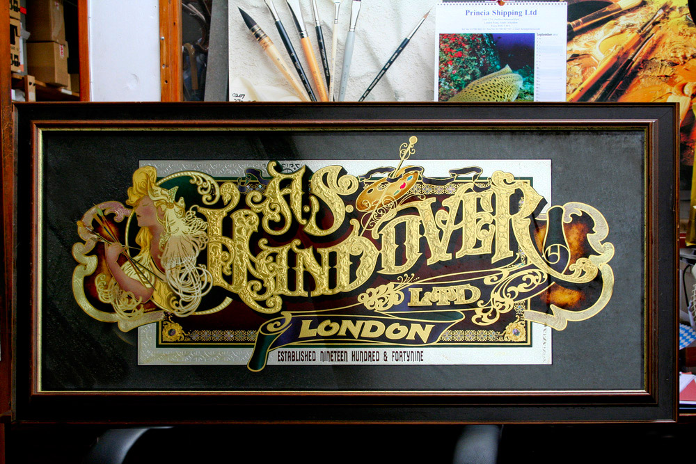 This Reverse glass advertising sign was made for my good friend Mike Venus who is the proprietor of a brush, paint and gold leaf supplies business in London.