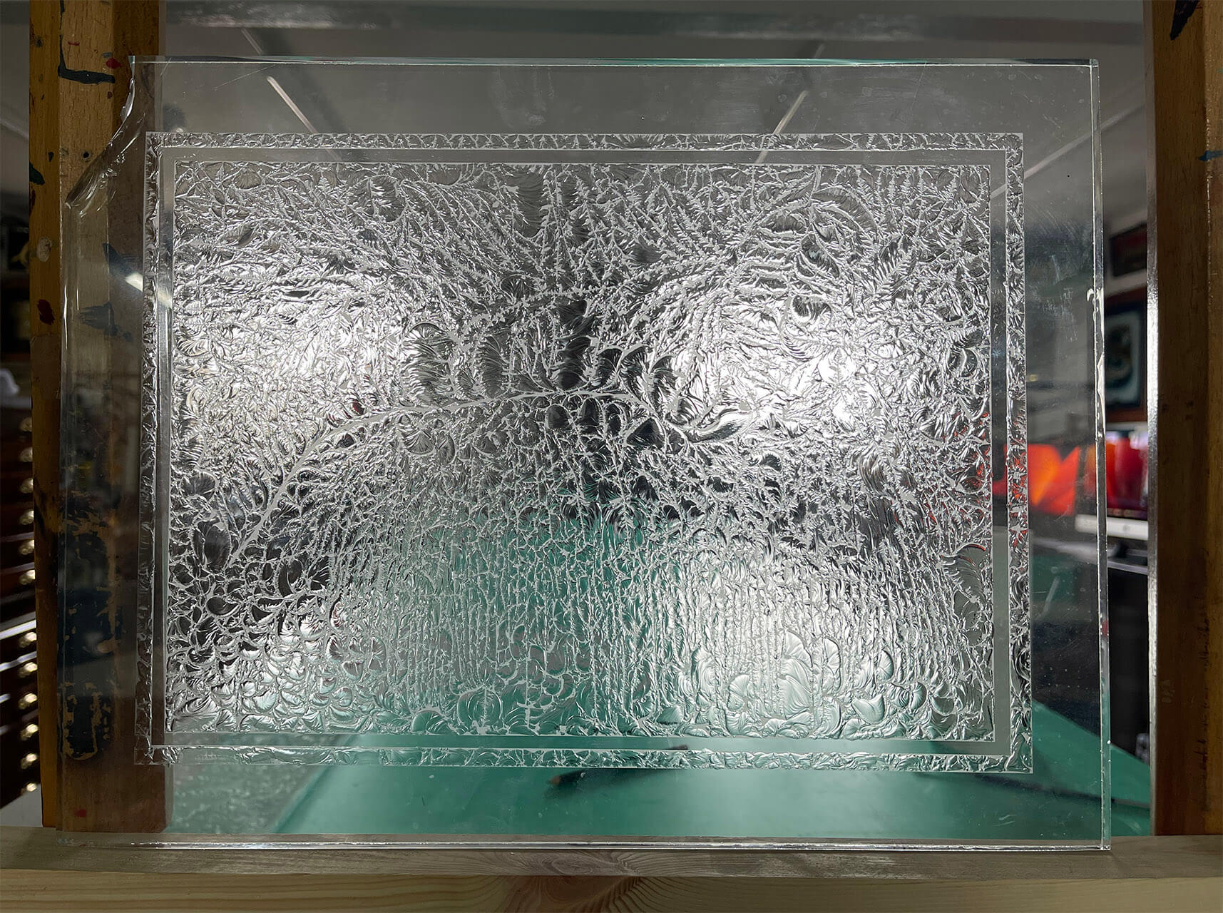 One of 20 Individual, Unique, Glue Chipped Glass signs and samples. Some of the nicest and wildest ornate chipped glass samples I’ve ever made in my studio.